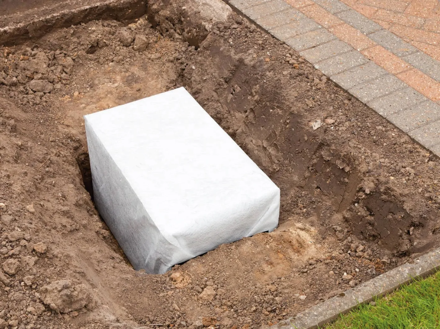 The CORE WATER CRATE comes with a high quality, 80gsm infiltration membrane included and already cut to size. The membrane lets water flow in easily while preventing sediment build up in the crate, before helping to control the water flow back into the soil at a natural pace. All you have to do is wrap it and use a small piece of tape to hold it in place.